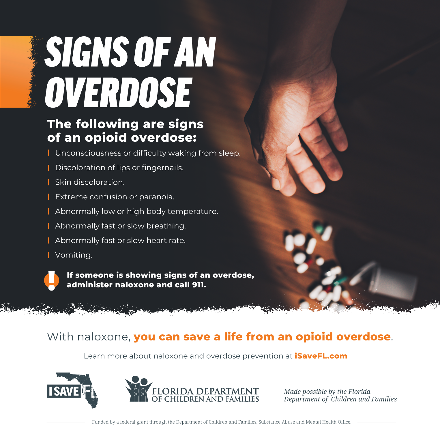 Suggested copy: Know what to do if you witness an opioid overdose. #GetNaloxone for free and #SaveALife by calling 911 after administering the medicine. Learn more at isavefl.com.